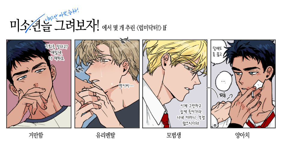 표지보고 찾아오실 분들은 원고 안의 작화와 살~~~짝(?) 이질감을 느끼실지도 모르겠어요.