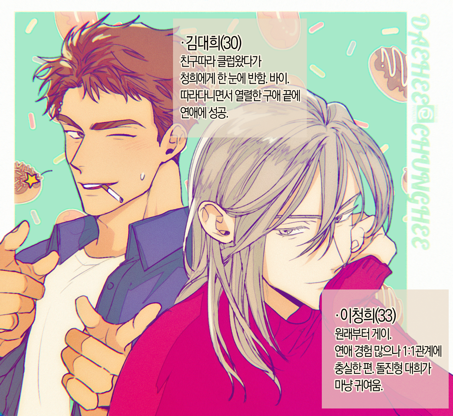 4. 사실 유준이의 클럽 친구들 중에 대희청희 커플도 정말 좋아했는데 둘 이야기는 따로 생각이 없으실까요?? 둘은 어떻게 만나게됐고 요즘은 어떻게 지내나요?? 다른 사람 잘 챙겨주고 상냥한 청희와 청희한테 꼼짝 못 하는 대희가 너무 귀여웠어요ㅎㅎㅎ